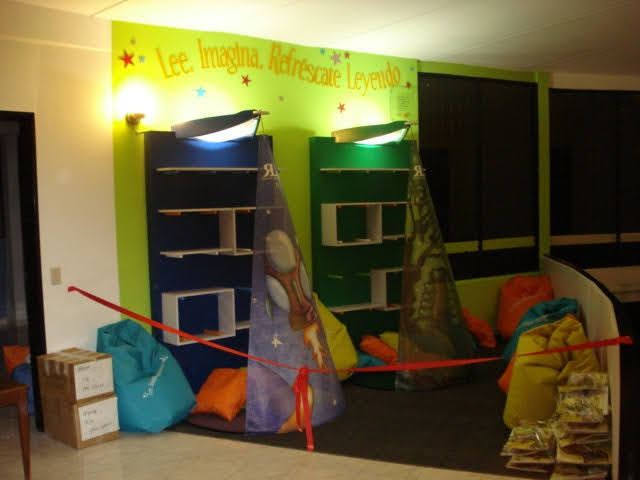 Mobiliario para proyecto Refrescate Leyendo de Cocacola Fensa. Espacios de lectura y bibliotecas infantiles en instituciones sociales.